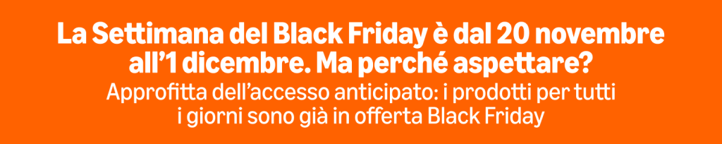 Non aspettate l’ultimo minuto! Già da ora, ci sono tantissime offerte “Black Friday in anticipo” che vi permettono di risparmiare cifre importanti. Ogni giorno, vi accompagneremo con una selezione delle migliori occasioni per aiutarvi a navigare in questo mare di sconti.